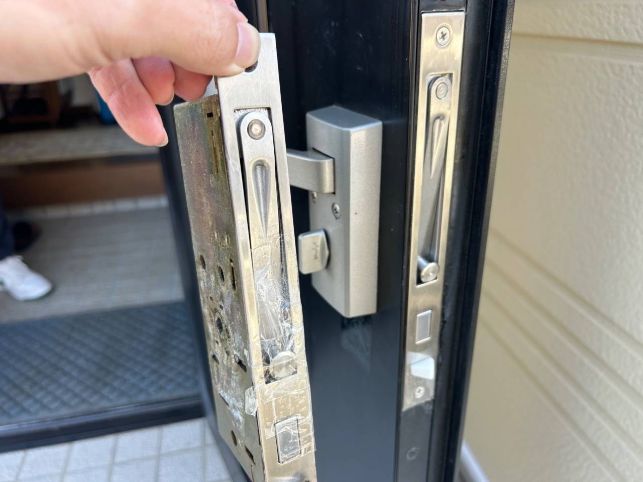 裏口や窓から出入りをしていたそうですが、不便でならないので修理をご依頼されました。